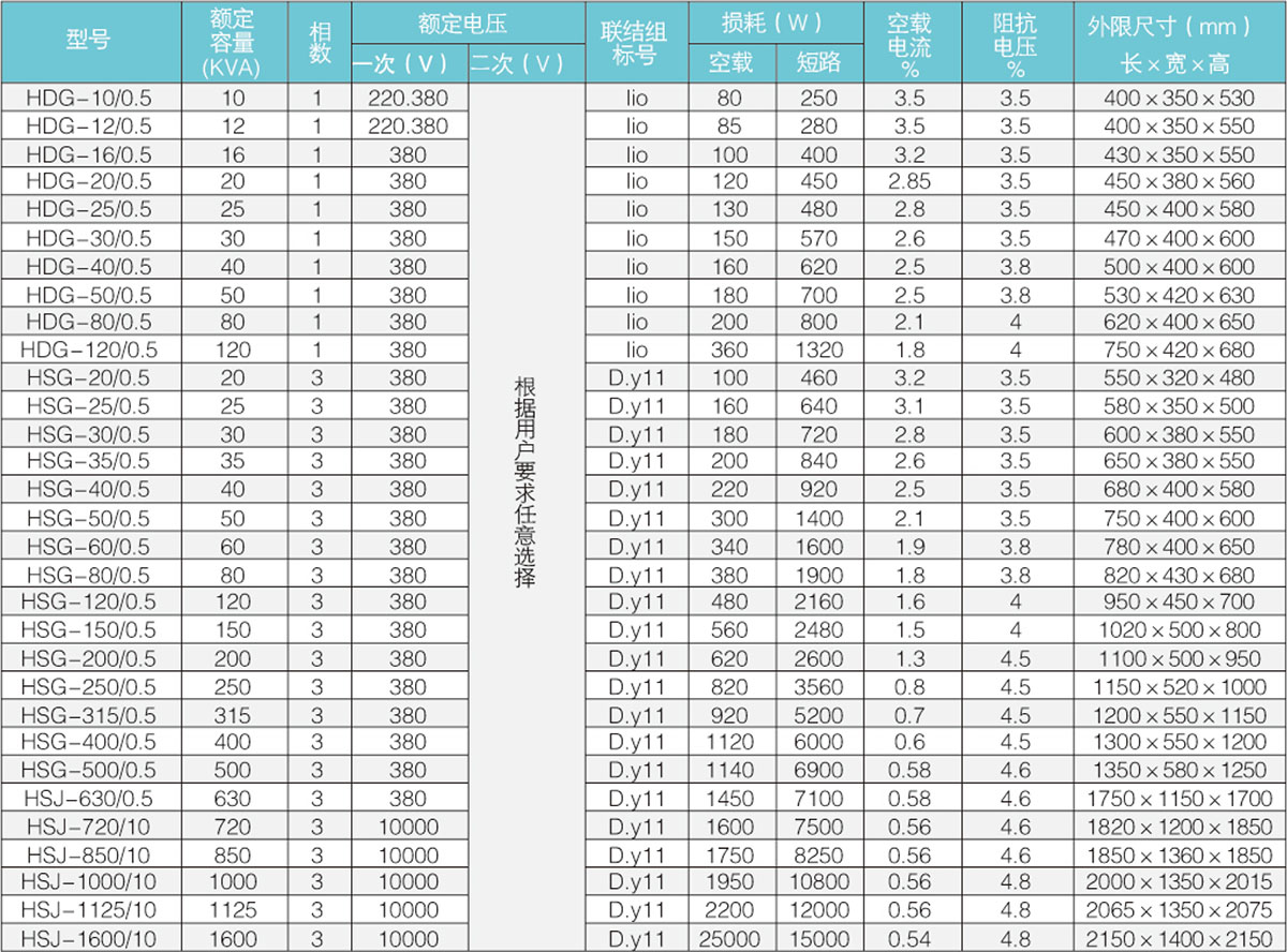 1, product model 2, rated capacity 3, phase number 4, connection group 5, voltage regulation method 6, high and low voltage voltage 7, special requirements