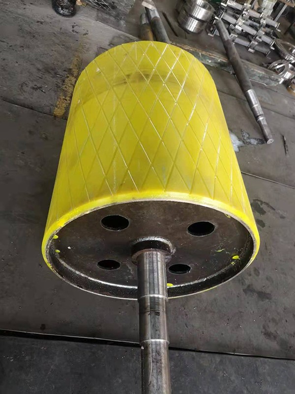 傳動(dòng)包膠滾筒表面有包膠裸露光鋼面,人字形和菱形花紋橡膠覆面,小功率,小帶寬及環(huán)境干燥時(shí)可采用裸露光鋼面滾筒,人字形花膠面摩擦系數(shù)大,防滑和排水性好。但有方向性,菱形膠面用于雙向運(yùn)動(dòng)行的輸送機(jī),用于重要場(chǎng)合的滾筒,采用疏化橡膠覆面。