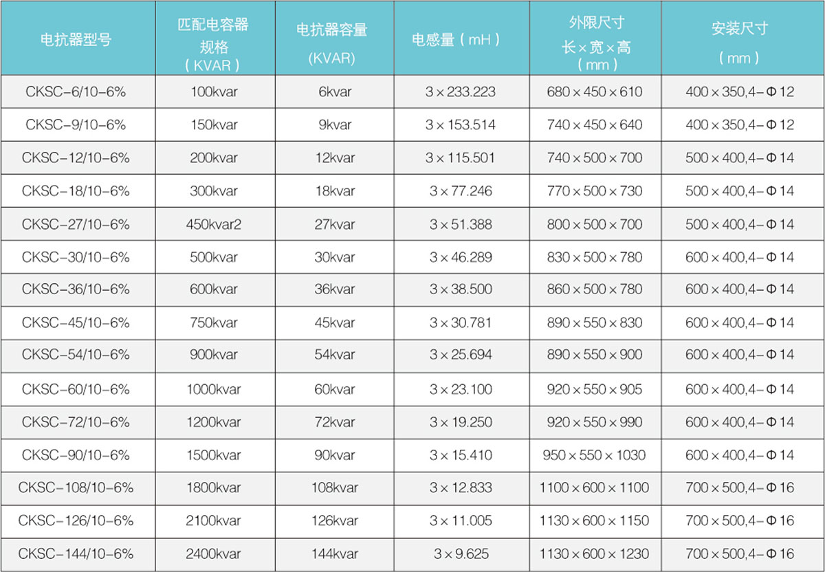 CKS型串聯(lián)電抗器與電容器組配合用于電力網(wǎng)絡(luò)中限制電容器組合閘時的涌流和高次諧波引起的過電流,對電容器的安全運行,改善電網(wǎng)質(zhì)量具有良好的作用。
