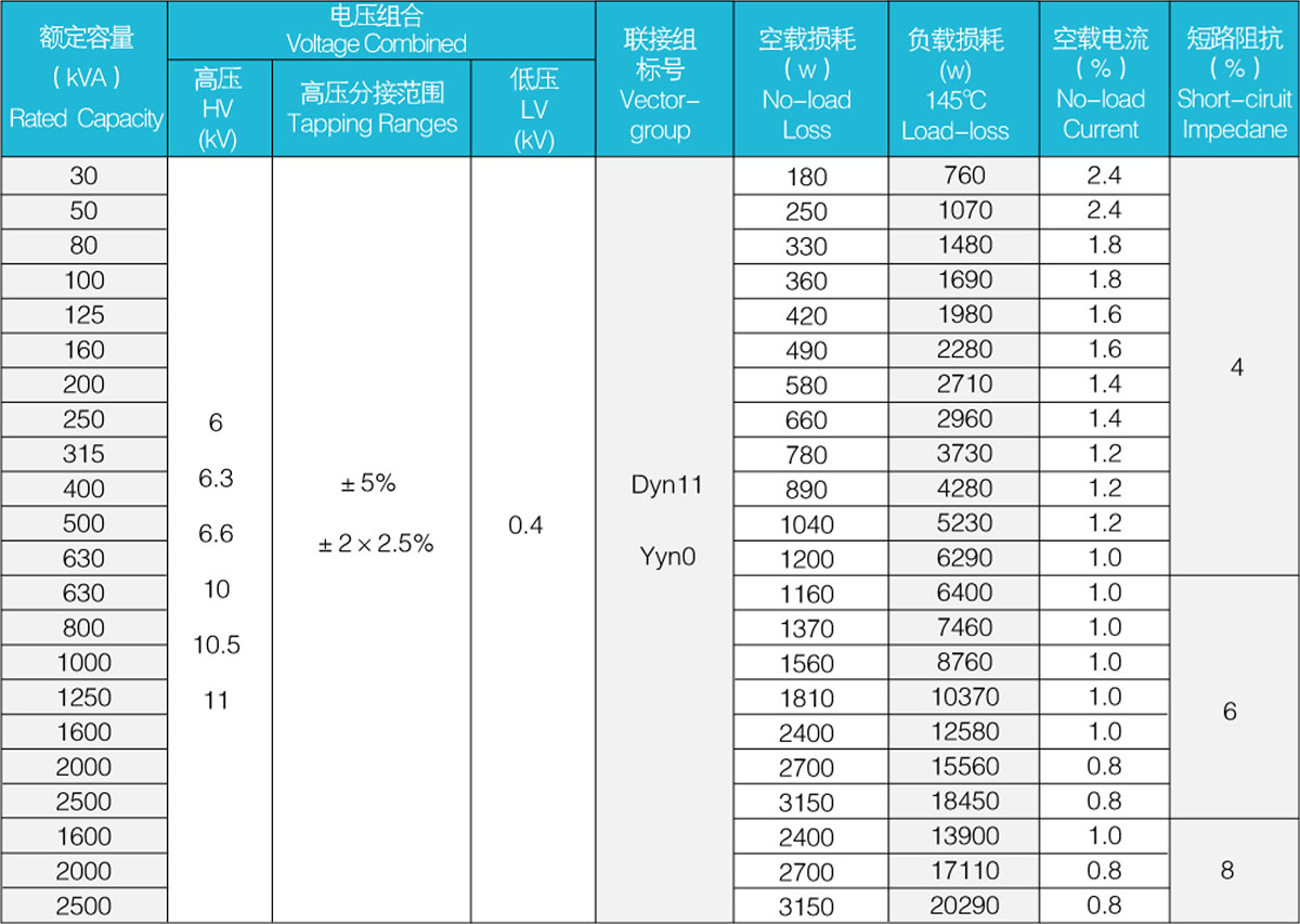 6. 損耗低,節(jié)能效果好,與SC9系列干式變樂(lè)基相比空載損耗平均下降10%,負(fù)載損耗下降5%。